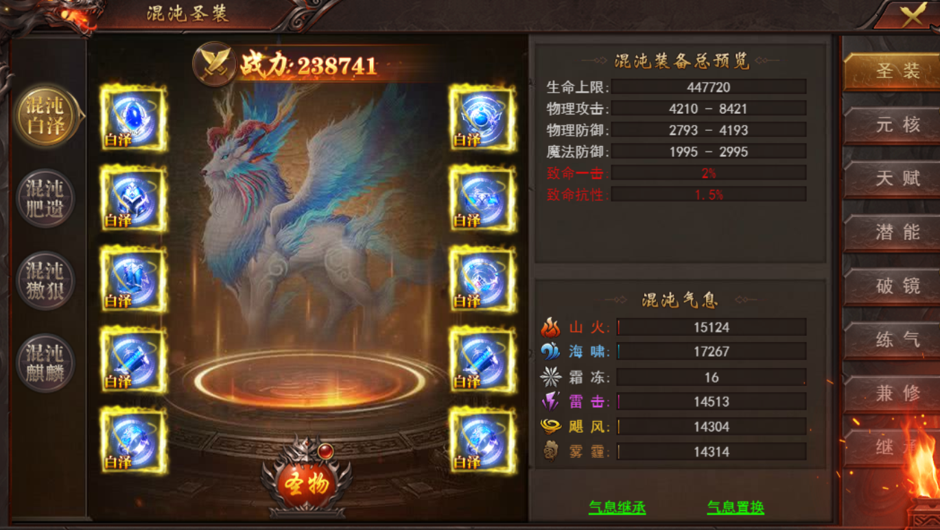 (1)混沌白泽、混沌肥遗、混沌獓狠、混沌麒麟:增加致命一击、致命抗性属性