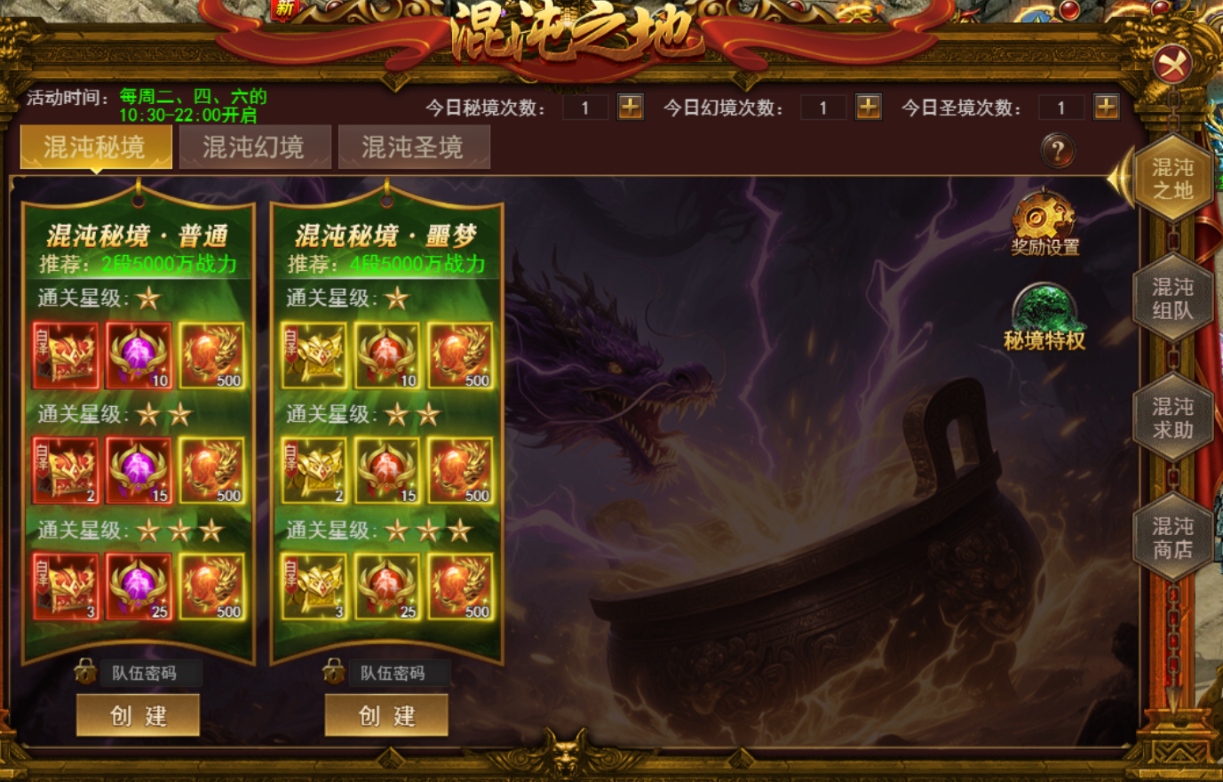 (4)在混沌之地开启期间,组队参加混沌之地发言需要消耗钻石,在混沌频道发言也需要消耗钻石500