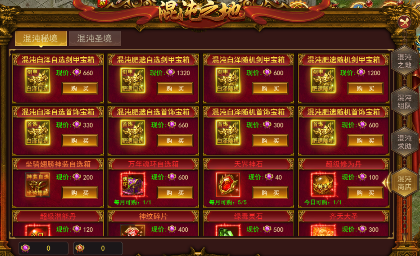 -通关混沌之地获取对应勋章即可兑换珍稀道具