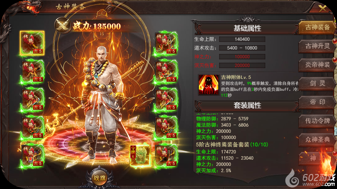 -消耗对应古神材料可为装备进行升灵,获得大量属性