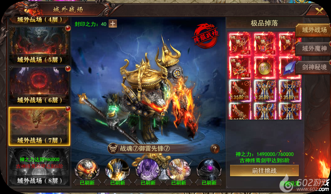 -不同层数所需要的神之力和古神装备不同,层数越高,奖励越好