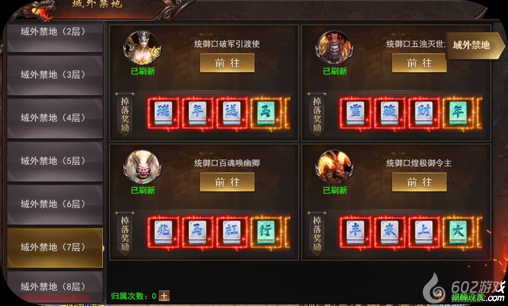 -击杀域外禁地的B0SS需要消耗1次禁地归属次数,归属次数可使用域外禁地秘钥获得